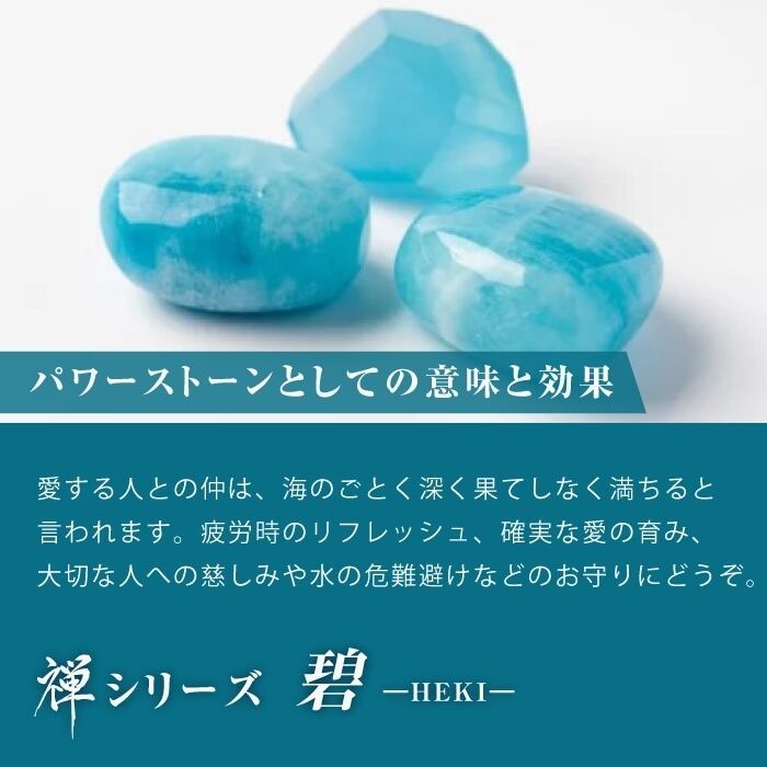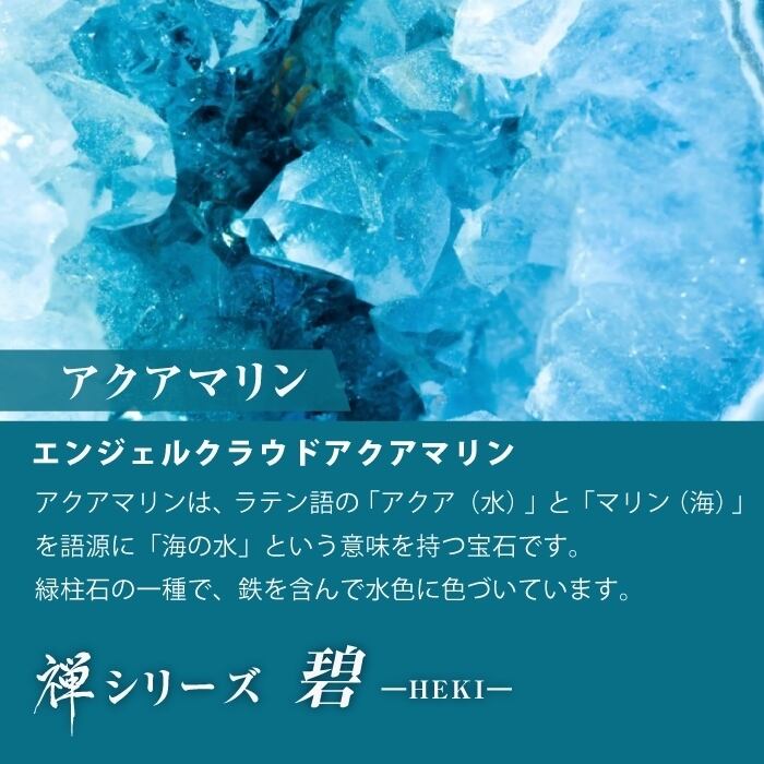 【アクアマリン】 禅シリーズ-碧- HEKI。この特別なアクアマリンは、心に平和をもたらし、直感を高める力を秘めています。その澄んだ青色は、心を浄化し、リラクゼーションを促進することで、豊かな内面を引き出してくれるでしょう。