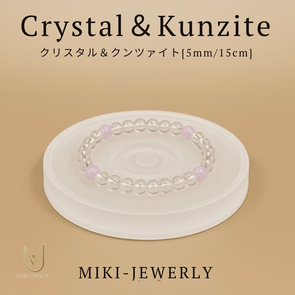 「万能の水晶 × 無償の愛の石」 内面を輝かせるブレスレット| MIKI-JEWERLRY【 本水晶&クンツァイト 5/15】 Crystal Quartz & Kunzite