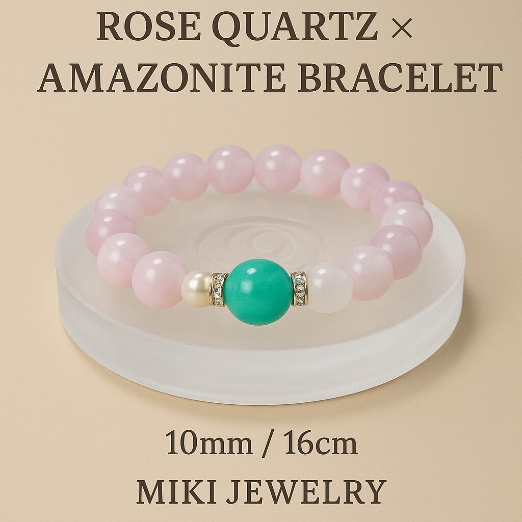 「愛と希望を同時に」 心を癒し未来を照らす石| MIKI-JEWERLRY【クンツァイト&アマゾナイト 11.5mm/17cm】 Garnet & Amazoite