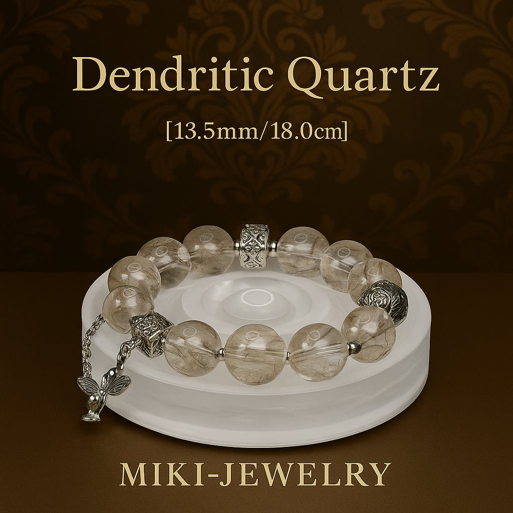 デンドリティッククォーツ 13.5mm/18cm【Dendritic Quartz】は、自然の美しさを象徴するデンドリティッククォーツが持つ神秘的な魅力と、洗練されたデザインが融合した魅力的なアイテムです。このブレスレットを身に着けることで、あなたのスタイルに特別な印象をもたらしてくれるでしょう。
