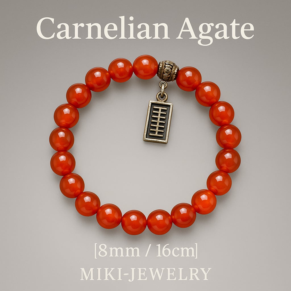 力強い生命力と勇気を与える赤の守護石|MIKI-JEWERLRY メノウブレスレット|8mm/16cm|Agate Bracelet