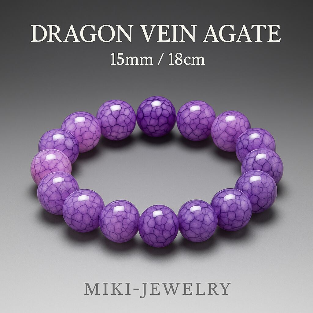 商品名:神秘の紫龍が宿る力強さと守護の石|MIKI-JEWERLRY ドラゴンヴェインアゲートブレスレット|15mm/18cm|Dragon Vein Agate Bracelet