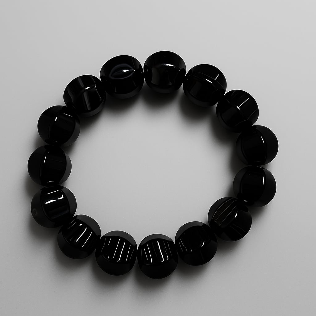 深い漆黒の輝きを持つ黒瑪瑙に、宝石のようなダイヤモンドカットを施した特別な天然石。