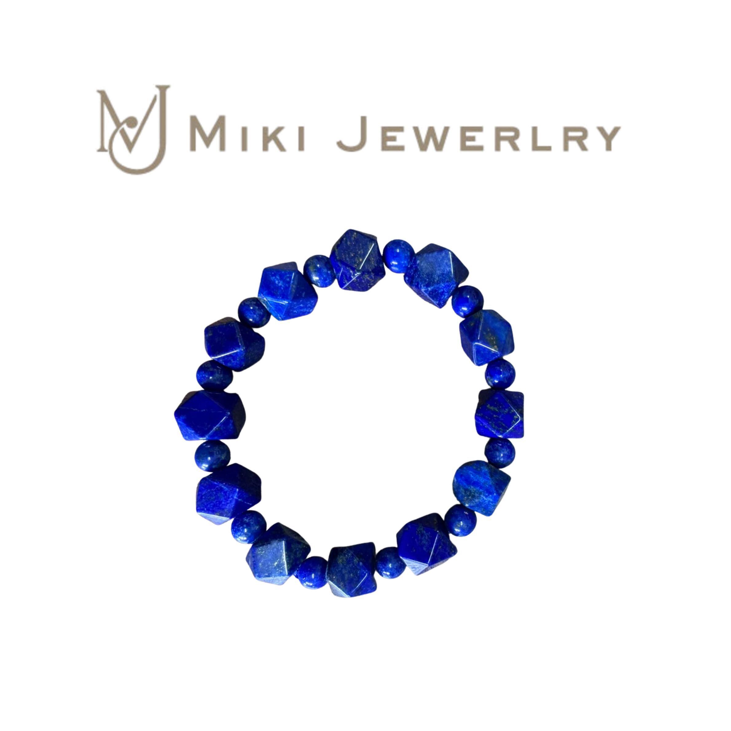 真理と幸運を引き寄せる王の青| MIKI-JEWELRY ラピスラズリカットブレスレット|10mm/16cm| Lapis Lazuli Faceted Bracelet|