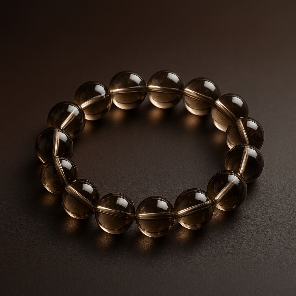 柔らかなグレーからブラウンの色合いが引き立つ、心を整える力を宿すスモーキークォーツブレスレットです。光を通すことで品のある透明感が際立ち、持つ人に安らぎを与える特別なアイテムです。