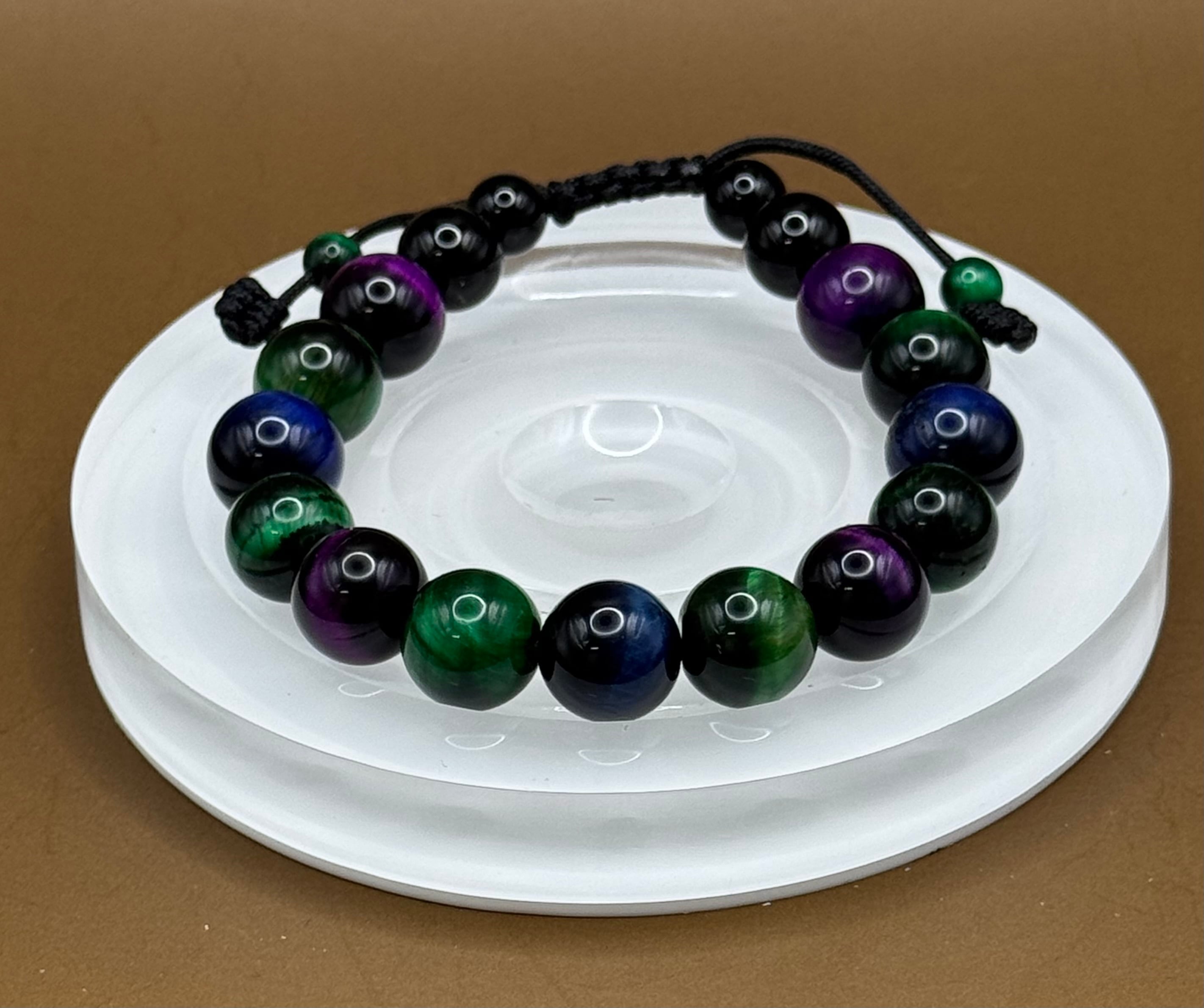 「多彩な輝きで人生を照らす」タイガーアイマルチカラーブレスレットは、あなたの毎日をより豊かで鮮やかなものにする特別なアイテムです。ぜひ、あなたの手元に置いて、その力を実感してください!