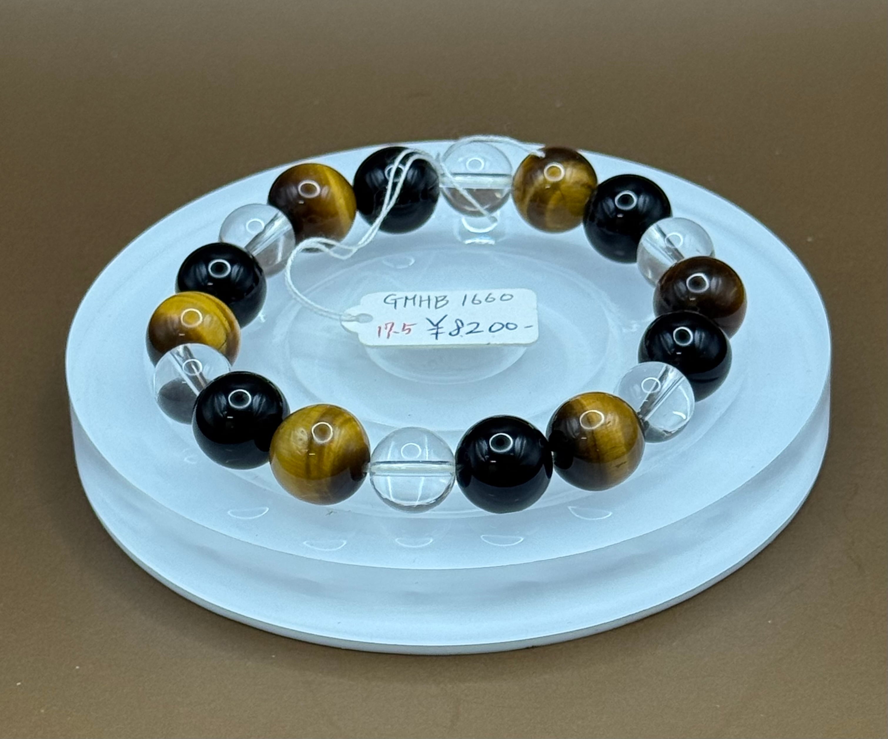 イエロータイガーアイは、直感を高め、意思の強さをサポートする石として知られています。一方、ブラックオニキスは、邪気払いと精神的安定を促進します。このブレスレットは、成功を追求し、自分自身を守りたい方に最適な組み合わせです。