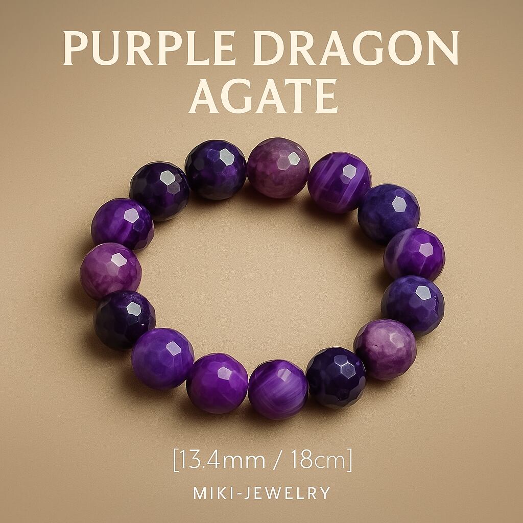 情熱の炎で限界を超える、覚醒と変容の石「MIKI-JEWELRY パープルドラゴンアゲートブレスレット」で、あなたの日常に力強いエネルギーをもたらしましょう。心の声に従い、自身の美しさを感じるための素敵なアイテムです!